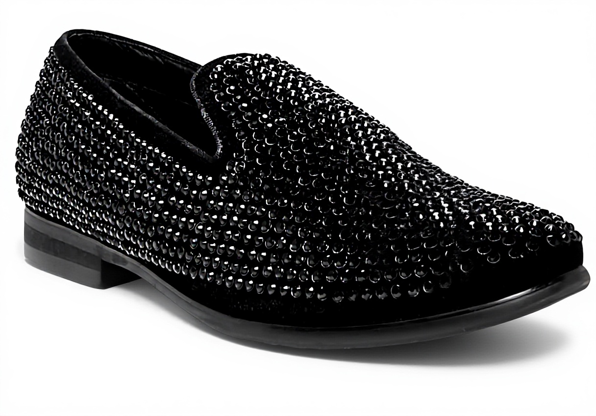 Available in sizes from 7 US to 12 US, with color options including black and rhinestone. The item model number is CAVIARR, and it weighs approximately 498.95 grams. Designed specifically for men, these loafers feature dimensions of 30.48 x 20.32 x 10.16 cm, ensuring a consistent and comfortable fit across all sizes.