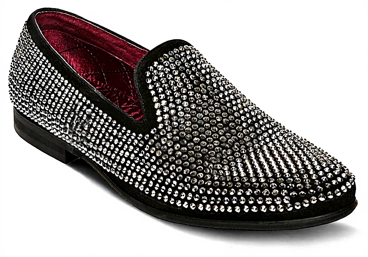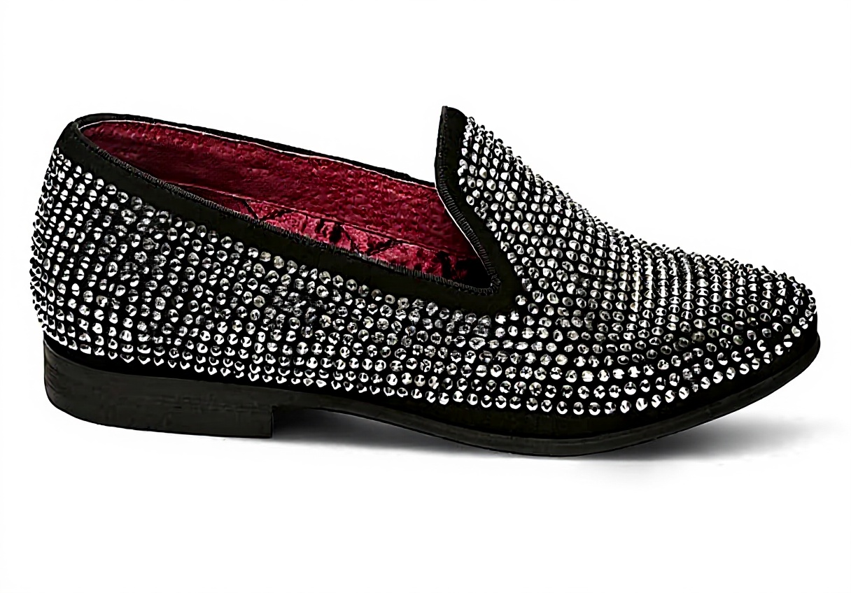 The Steve Madden Men’s Caviarr Slip-On showcases a textile upper with elegant crystal embellishments, providing a sophisticated look. It includes a synthetic outsole for durability and a slip-on construction with a round toe for effortless wear. The 0.75-inch heel adds subtle elevation without compromising comfort.