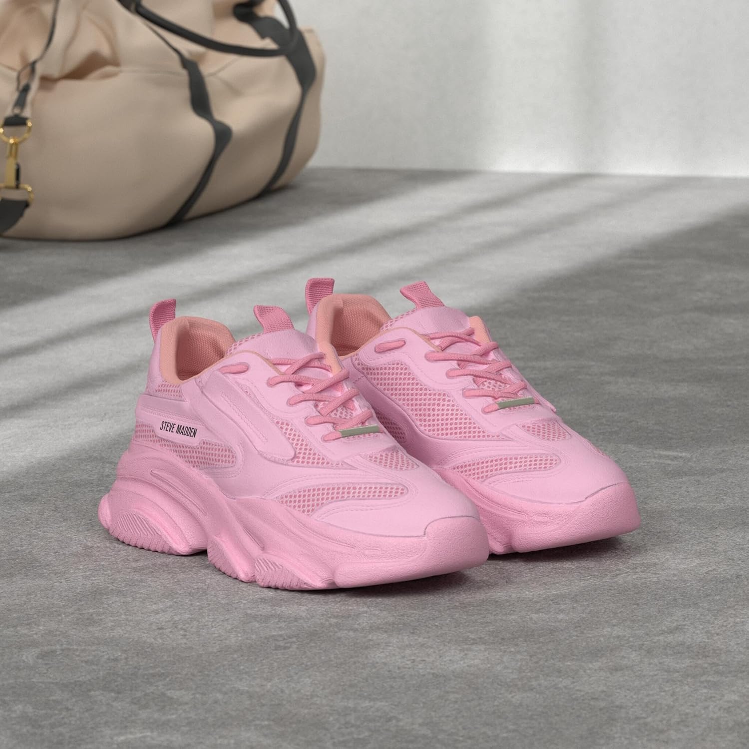The Steve Madden Possession sneakers showcase contemporary design with practical functionality. These trainers feature a synthetic upper, lining, and sole construction that provides durability and consistent performance. The 2.5-inch platform elevates your style while maintaining comfort, and the lace-up closure ensures a secure, customizable fit for all-day wear.