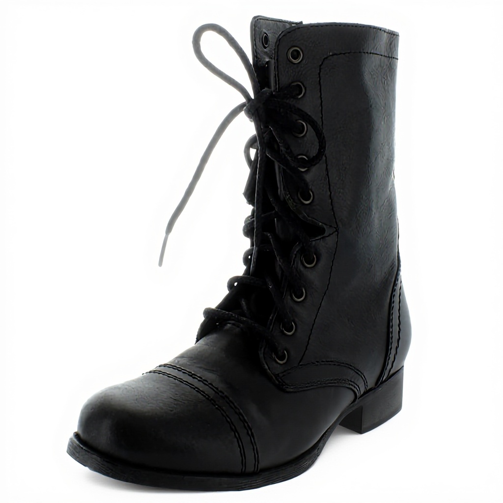 These combat boots from Steve Madden feature a distressed leather upper that adds a rugged, vintage-inspired look. The design includes a full-length instep zipper for easy on and off, complemented by a lace-up shaft to adjust the fit. Inside, the boots are lined with man-made or leather materials and have a lightly cushioned leather footbed for comfort. A durable cap toe enhances the boot’s longevity and style.