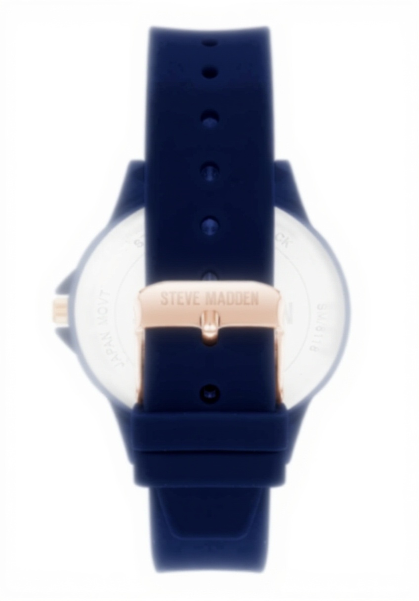 The Steve Madden Women’s Real Crystal watch showcases exceptional craftsmanship with its bezel set with 120 clear genuine crystals that catch the light beautifully. The mineral crystal lens protects the elegant navy blue glossy dial, which features non-functional subdials and white-filled rose gold-tone hands and markers for a sophisticated appearance. Available in both Navy/Rose Gold and Pink color options, this timepiece combines luxury materials with contemporary design elements.