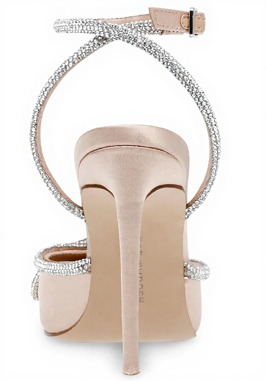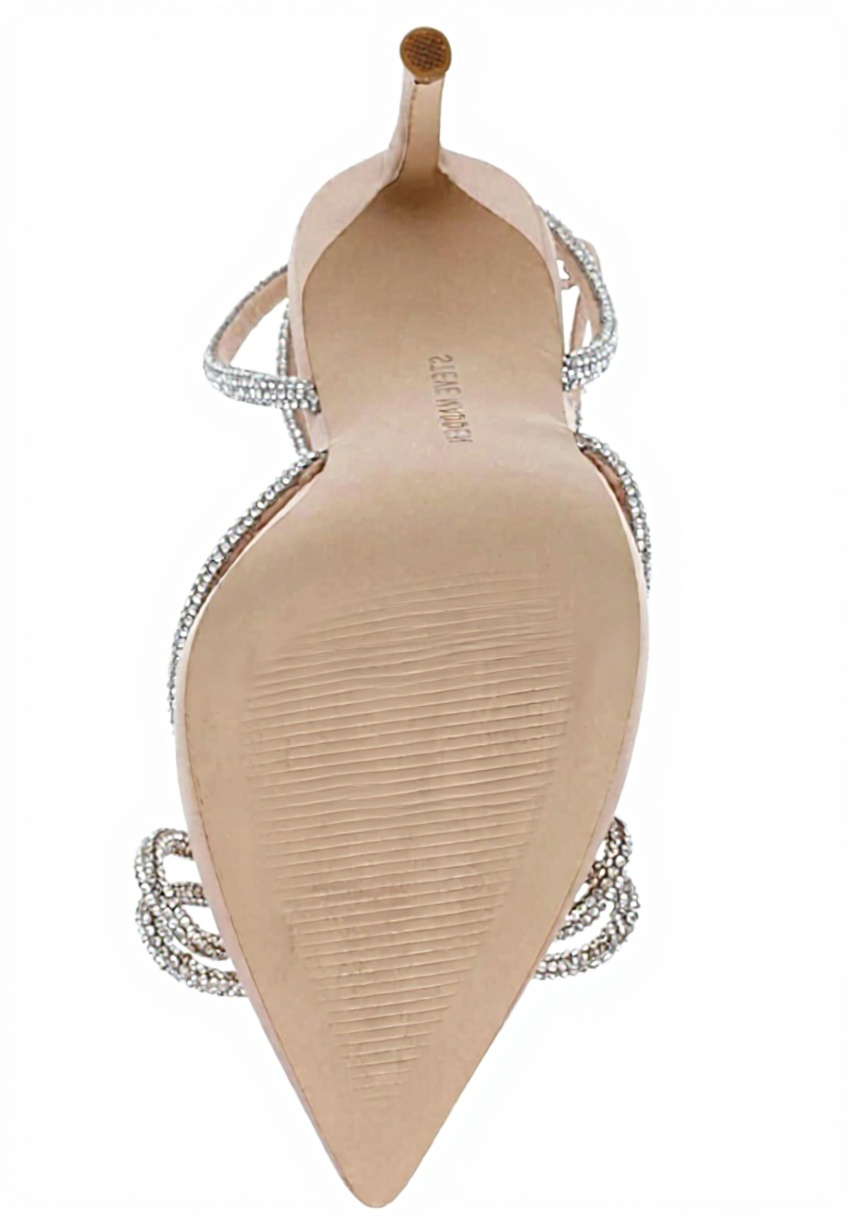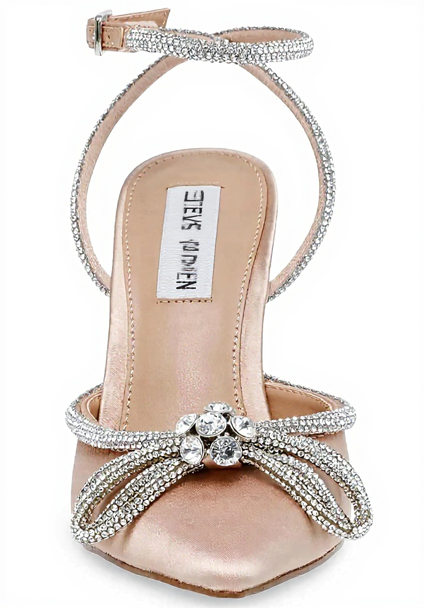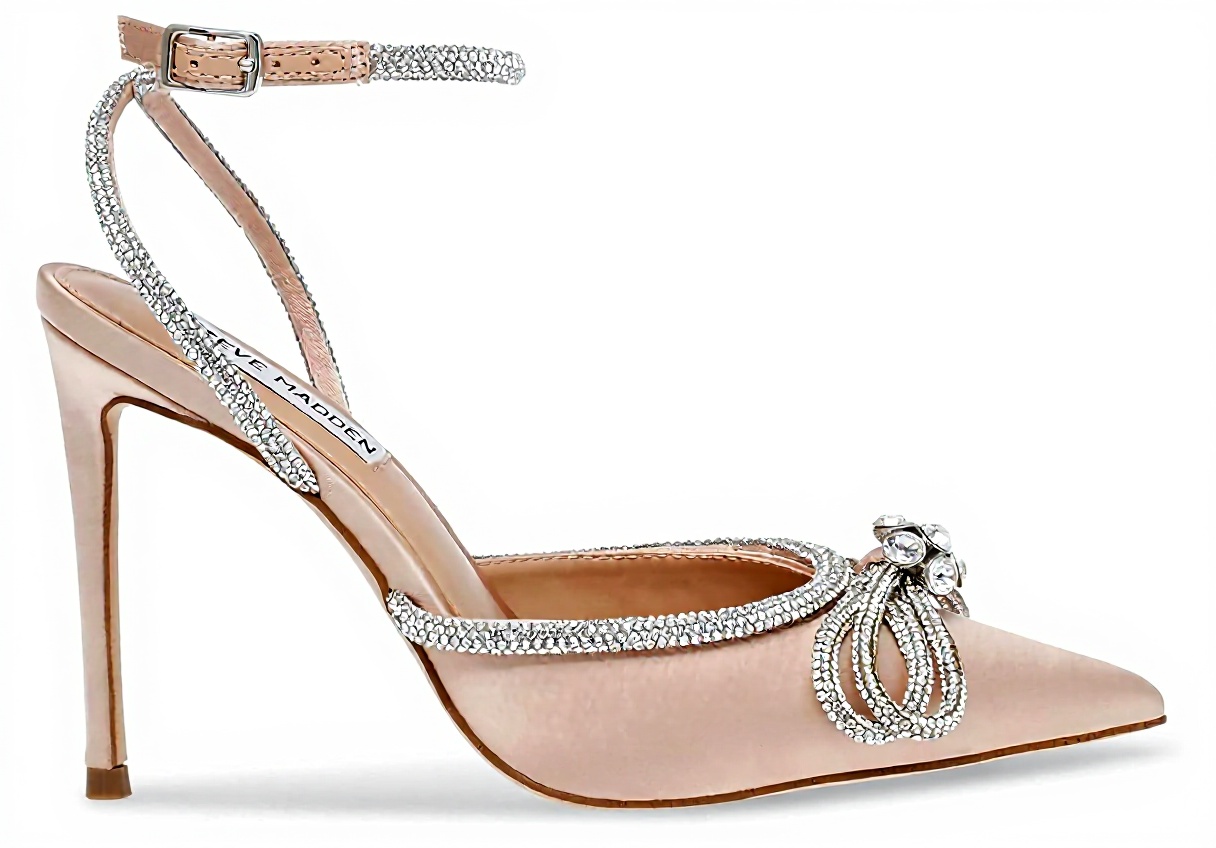 The Steve Madden Women’s Viable Pump features a pointed toe design with an embellished ankle strap and bow, adding a touch of sophistication. Crafted with a textile upper material adorned with stones and a synthetic insole, these stiletto heels offer both style and durability for everyday elegance.